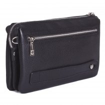 Внутри 2 больших оделения, с одной стороны корман на молнии, с другой стороны корман для мобильного телефона, посередине тонкое отделение на молнии. С внешних сторон отделения на молнии. Отстегивающийся кожаный ремешок длина 132см.