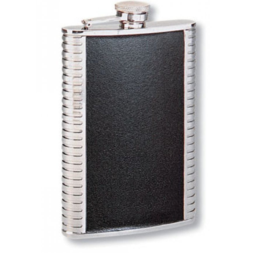 Фляга S.Quire 0,18 л, сталь+натуральная кожа, вставка черная