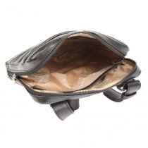 Сумка мужская выполнена из натуральной кожи. Закрывается на двустороннюю молнию, внутри одно отделение, в котором расположены 1 карман на молнии, держатель для авторучек, карман для мелких предметов. Снаружи с внешней стороны сумки 2 кармана на молнии, с внутренней стороны расположен ещё один карман на молнии. Плечевой ремень регулируется по длине. Размеры: 27 х 23,5 х 5 см.
