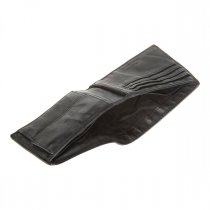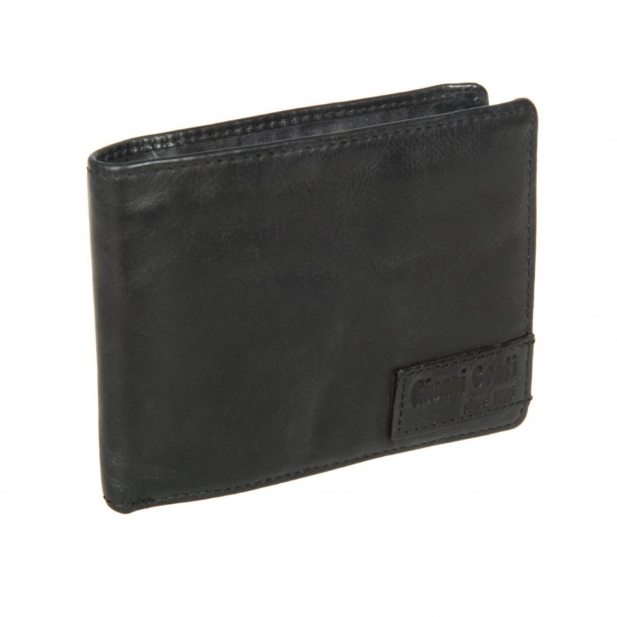 Мужское чёрное портмоне в винтажном стиле из натуральной патинированной кожи с эффектом потёртости от бренда Gianni Conti. Внутри два отделения для купюр, карман для монет на кнопке, два потайных кармашка и четыре кармашка для пластиковых карт.