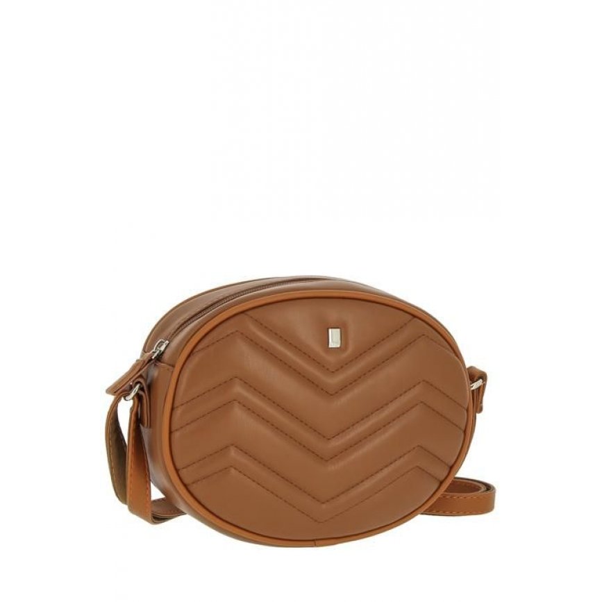 Внутри одно отделение и кармашки. Наплечный ремень регулируется до 55 см. Состав: экокожа. Цвет: коричневый. Размеры: длина 21 см, высота 16 см, ширина 6