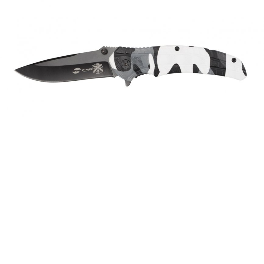 Нож складной Stinger, 84 мм, (чёрный), материал рукояти: алюминий (чёрно-белый камуфляж) FK-019SNO-CA
