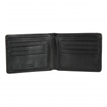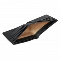 Портмоне раскладывается пополам, внутри два отдела для купюр, восемь кармашков для пластиковых карт, четыре отдела для документов. Имеет защитный слой от считывания кары RFID-Protection.