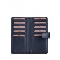 Мужской кошелек торговой марки SAAJ из натуральной кожи.Внутри два потайных кармана для купюр и 18 кармашков для пластиковых карт. Изделие упаковано в фирменную подарочную картонную коробку с логотипом фирмы.
