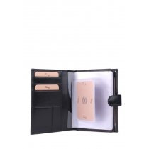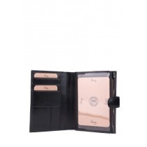 Мужской кошелек торговой марки SAAJ из натуральной кожи. Портмоне закрывается на кнопку. Внутри отдел для купюр, 3 кармана для пластиковых карт, один потайной карман, отделы для паспорта, для водительского удостоверения, для свидетельства о регистрации ТС, для старого образца водительского удостоверения, пластиковые вкладыши на 8 карт, на задней стенке карман для мелочи на молнии. Изделие упаковано в фирменную подарочную картонную коробку с логотипом фирмы.