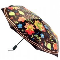 Автомат, три сложения, восемь спиц, диаметр купола 104 см, пластиковая ручка с петлёй на запястье. Вес 360 грамм.