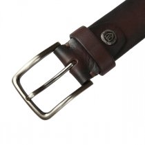 Джинсовый ремень из натуральной цельной кожи шириной 4 см. Ремень имеет 5 отверстий для регулировки и винтовое крепление для укорачивания. Размер пряжки: 5,5 х 5 см. Поставляется в фирменной коробке.