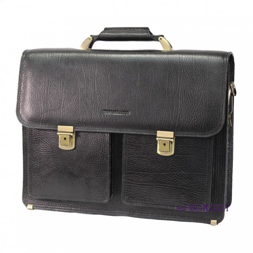 Большой портфель из натуральной телячьей кожи. Имеется ручка для ношения в руке, а также удобный регулируемый ремень с кожаной вставкой. Вмещает формат А4.