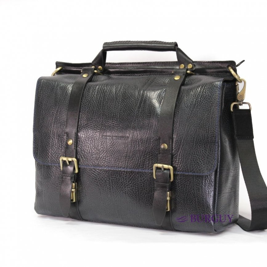 Стильная сумка портфель для документов из натуральной телячьей кожи. Имеется ручка для ношения в руке, а также удобный регулируемый ремень с кожаной вставкой. Вмещает формат А4.