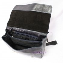 Основное отделение закрывается клапаном с двумя застёжками на замочках. Сумка снаружи сзади имеет скрытый карман на молнии. . Внутри два основных отдела, для мелочей есть карман на молнии и несколько открытых отделений для ручек и визиток., а также есть карман, который закрывается на молнию. На дне имеются металлические ножки.