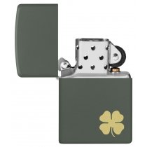 Зажигалка ZIPPO Four Leaf Clover с покрытием Green Matte, латунь/сталь, зеленая, 38x13x57 мм 49796