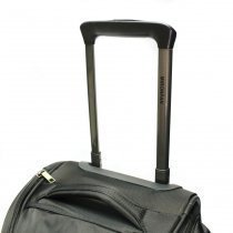 Выдвижная ручка фиксируется в двух положениях. Внутри карман сеточка. Снаружи три кармана на молнии.
