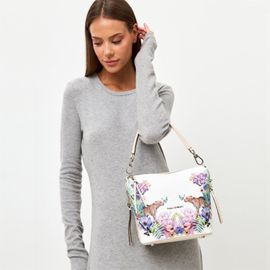 подарка. Украшена воздушным летним принтом. Внутри два отделения, перегородка на молнии, один карман на
