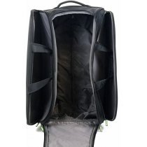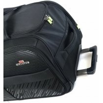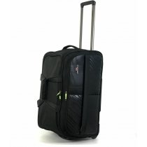 Выдвижная ручка фиксируется в двух положениях. Внутри карман сеточка. Снаружи три кармана на молнии.