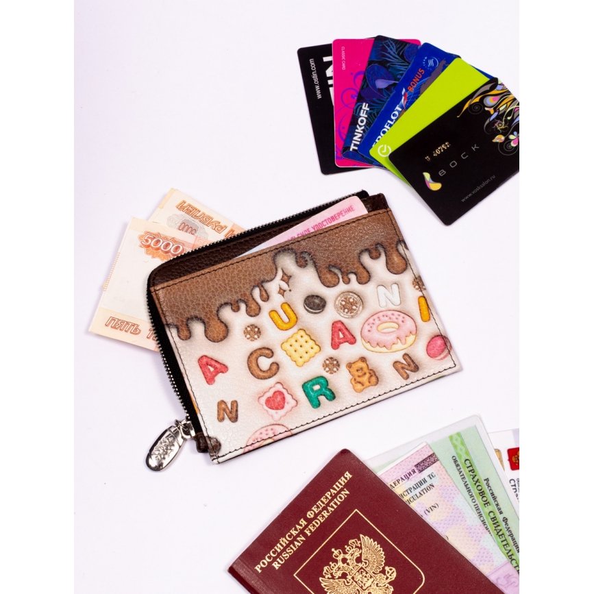 Отделения: отдел для купюр на молнии, отдел для СНИЛС - 1, отдел для водительского удостоверения - 1, отдел ТТС - 1, отдел для карт - 4, отдел для паспорта - 1.
