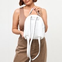 Рюкзак женский на ручке из натуральной зерненой кожи, закрывается на молнию. В городском спортивном стиле. Мягкий, легкий, вместительный. Подходит для повседневной носки, в качестве подарка. Внутри одно отделение, один карман на молнии, один открытый карман. Снаружи один накладной передний карман на молнии овальной формы с тисненым логотипом бренда.
