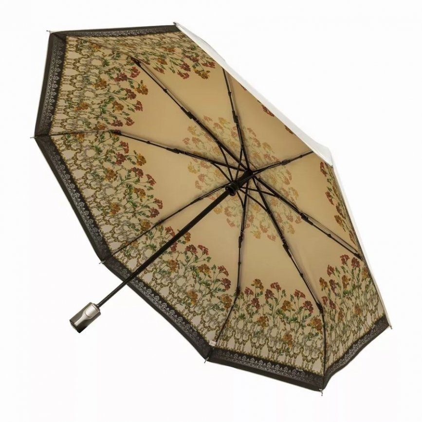 Женский зонт 3 сложения, полный автомат, имеет рисунок только с нижней стороны купола. Верхняя сторона купола серебристая.