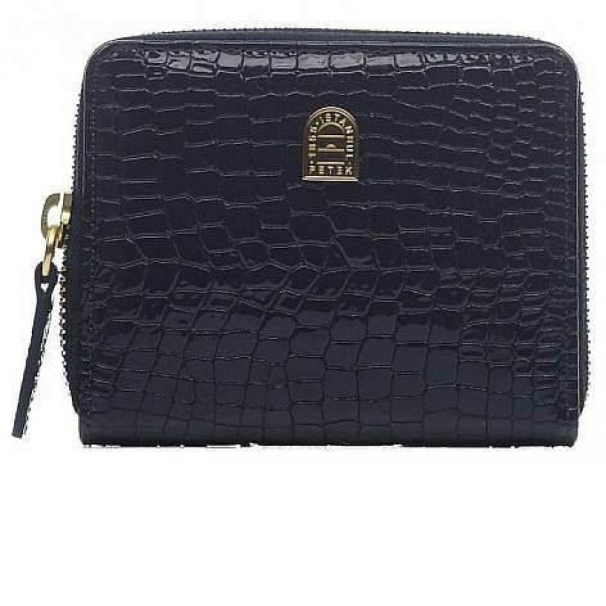 Портмоне Petek выполнено из натуральной кожи. В кошельке есть отделение на молнии, а также три отделения для кредитных карт и два отделения для купюр, которые можно сложить. Ещё есть монетница. Отделение на кнопке включает в себя три отделения для кредитных карт, отделение для купюр и окошко с сеткой. На внешней стороне кошелька расположен карман.