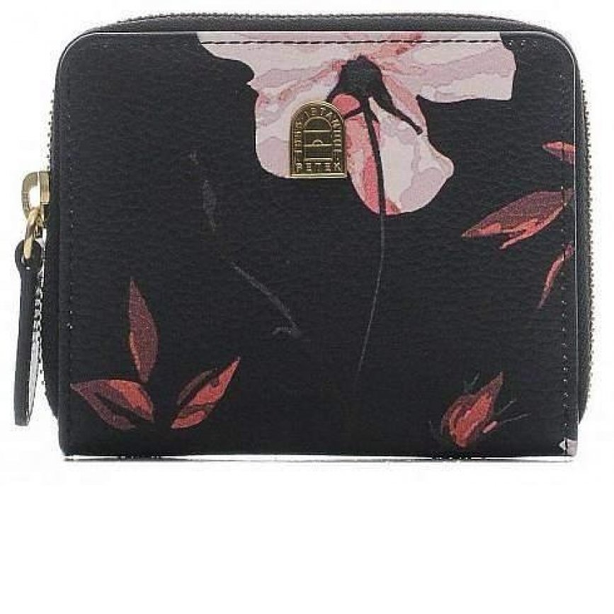 Портмоне Petek выполнено из натуральной кожи. В кошельке есть отделение на молнии, а также три отделения для кредитных карт и два отделения для купюр, которые можно сложить. Ещё есть монетница. Отделение на кнопке включает в себя три отделения для кредитных карт, отделение для купюр и окошко с сеткой. На внешней стороне кошелька расположен карман.
