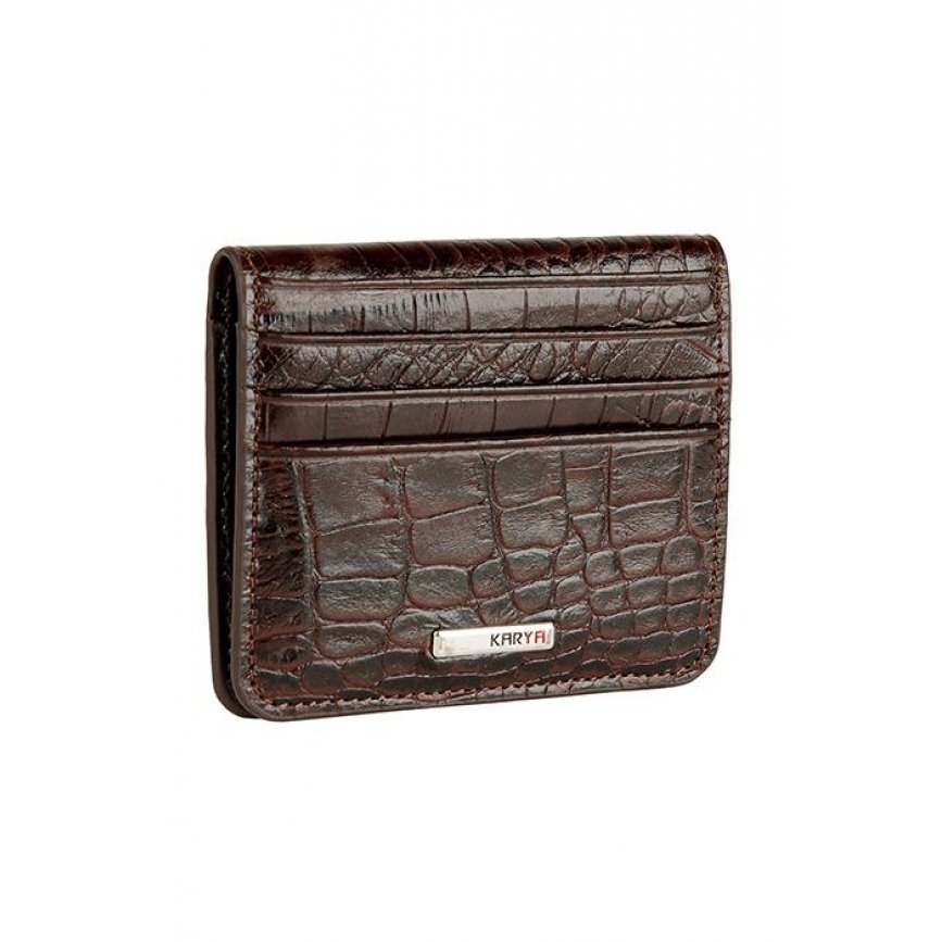 Картхолдер двойного сложения на кнопке Karya с отделом для купюр из 100% натуральной кожи. Компактный картхолдер предназначен специально для хранения банковских кредитных пластиковых карт, визиток и бумажных купюр. Включает один отдел для купюр, снаружи с одной стороны четыре отдела под пластиковые карты и визитки и с другой четыре для карт. Размеры ширина 10 см, высота 8.5 см. Подходит как для мужчин так и для женщин. Кредитница поставляется в фирменной картонной упаковки