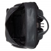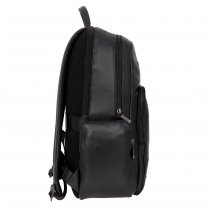 Рюкзак с отделением для ноутбука для деловых поездок и путешествий. Состоит из двух отделов, оба закрываются на молнию. Внутри первого, два вместительный отдела, отделение для планшета или ноутбука на липучке и другой для документов, закрывается на двухстороннюю молнию, во втором отделении два кармана для документов один из карманов на молнии, два держателя для авторучек, шесть кармашков для пластиковых карт и карман для мобильного телефона. На лицевой стороне один карман быстрого доступа на двухсторонней молнии, в нутри два кармана для ручек и одно отделение для документов. По бокам расположены два кармана на молнии. Рюкзак оснащён мягкими регулируемыми плечевыми лямками.