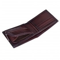 Мужское портмоне из натуральной кожи, раскладывается пополам, внутри отделение для купюр, три потайных кармана, шесть кармашков для пластиковых карт. Карман для мелочи на молнии. Оснащено RFID-защитой, что позволяет защитить банковские карты от считывания. Упаковано в подарочную жестяную коробку.
