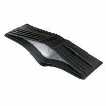 Мужское портмоне из натуральной кожи. Складывается пополам, внутри два отделения для купюр, четыре потайных кармана, восемь карманов для пластиковых карт. Упакован в подарочную коробку.