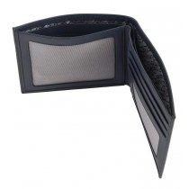Портмоне имеет два отделения для банкнот, два кармана-окна из прозрачной черной сетки, а также два прорезных кармана для пластиковых карт или визиток, что позволяет удобно хранить все необходимые вещи, не занимая много места.