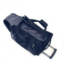Выдвижная ручка фиксируется в двух положениях. Внутри карман сеточка. Снаружи три кармана на молнии.