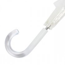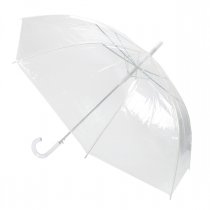 Необычный белый прозрачный женский зонт-трость полуавтомат от бренда «Zemsa». Купол зонта прозрачный. Инновационные, экологичные, гипоаллергенные материалы без запаха. Купол зонта не требует дополнительной обработки. Открывается через кнопку, закрывается в ручную. Ручка крюк из пластика. Красивое белое обрамление купола зонта. Есть чехол. Размер купола 116 см.