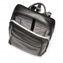 Рюкзак Gianni Conti из натуральной кожи, черного цвета, с двумя отделами на двойной молнии. Внутри имеется двойное отделение для планшета или ноутбука на липучке, карман на молнии, два кармашка для мелких предметов, держатель для авторучки. С внешней стороны на лицевой стенке карман на молнии. Имеется ручка и регулируемые плечевые лямки. Сзади имеется приспособление для крепления на ручку чемодана и карман на молнии.