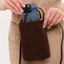 Ширина 3см.Маленькая женская сумочка на двух ручках и длинном ремешке из натуральной замши, закрывается на магнитную кнопку. Стильный трендовый аксессуар для повседневной носки, подойдет в качестве подарка. Предназначен для телефона, ключей, документов. Внутри одно отделение, один открытый карман. Высота ручек 7 см, длина ремешка 121 см. Вес 150гр., в упаковке 200 гр.