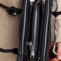 Ширина 24см.Глубина 11см.Высота ручек 10см.Сумка женская на двух ручках из гладкой кожи коровы закрывается на молнию. В