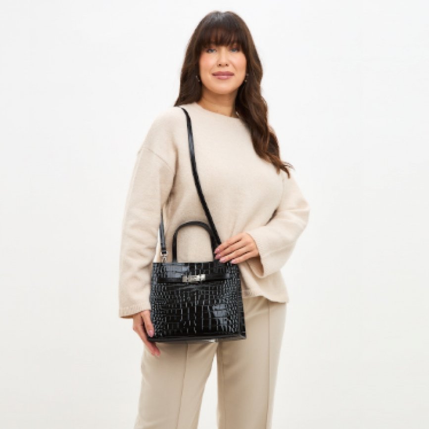 Сумка женская на двух ручках из лакированной кожи коровы тисненой