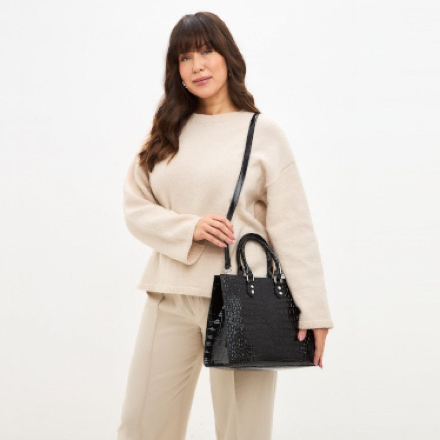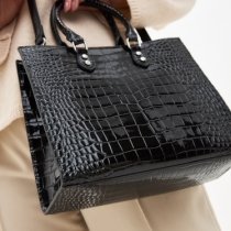 Сумка женская на двух ручках из лакированной кожи коровы тисненой