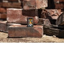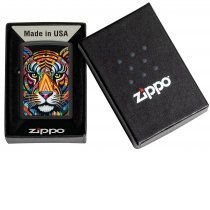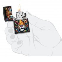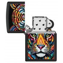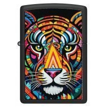 Яркий, абстрактный тигр стоически смотрит с поверхности этой классической зажигалки черного матового цвета, выполненной в смелом дизайне методом цветного изображения.