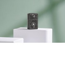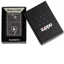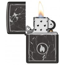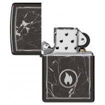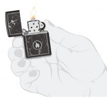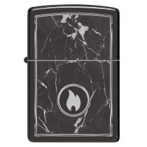 На поверхности этой классической зажигалки черного изображен завораживающий рисунок пламени Zippo, окруженный реалистично выглядящими мраморными прожилками.