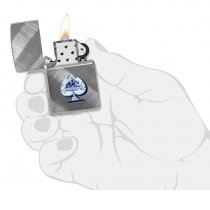Зажигалка ZIPPO Gleaming Spade Design с покрытием Diagonal Weave, латунь/сталь, серебристая, матовая, 38x13x57 мм 46472