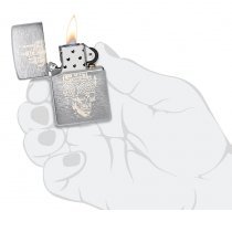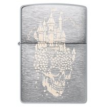 Зажигалка ZIPPO Skull Castle Design с покрытием Brushed Chrome, латунь/сталь, серебристая, 38x13x57 мм 46477