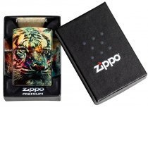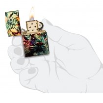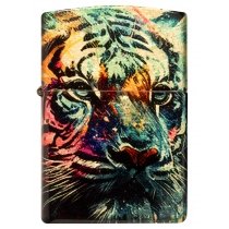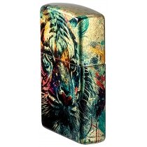 Королевский портрет тигра, размещенный на мерцающем латунном фоне и подчеркнутый яркими вспышками цвета, охватывает все стороны этой зажигалки 540 Fusion, дизайн которой был вдохновлен настоящим уличным искусством.