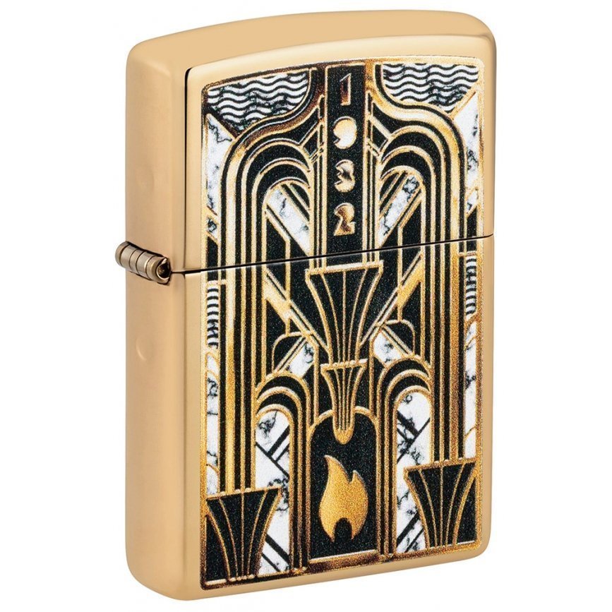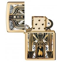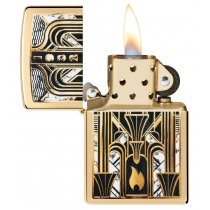 Стиль арт-деко идеально вписывается в эту классическую зажигалку с покрытием High Polish Brass. Элегантный дизайн сочетает в себе типичные формы и цвета той эпохи, дополненные встроенным изображением пламени и годом основания компании Zippo.
