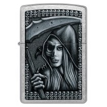 Зажигалка ZIPPO Grim Beauty с покрытием Street Chrome, латунь/сталь, серебристая, матовая, 38x13x57 мм 46151