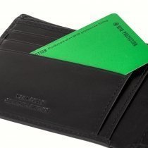Портмоне раскладывается пополам, внутри два отдела для купюр, шесть кармашков для пластиковых карт, четыре отдела для документов. Имеет защитный слой от считывания кары RFID-Protection.