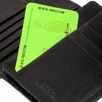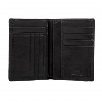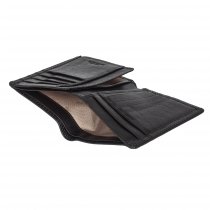 Портмоне раскладывается пополам. Внутри два отделения для купюр, два потайных кармана, два сетчатых кармана и десять кармашков для пластиковых карт.
