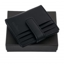 Мужское кожаное портмоне-картхолдер от Gianni Conti. Выполнено из натуральной патинированной кожи чёрного цвета. Портмоне раскладывается пополам, внутри одно отделение для купюр и шесть карманов для пластиковых карт. С наружной стороны также расположены шесть кармашков для пластиковых карт. Закрывается клапаном на кнопку. Поставляется в фирменной коробке от бренда Gianni Conti.