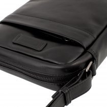 Мужской планшет из натуральной кожи. Внутри один основной отдел, в котором карман на молнии и два открытых кармана для мелких предметов. Снаружи на лицевой и задней стенках карманы на молнии. Планшет оснащён кожаным регулируемым плечевым ремнём.