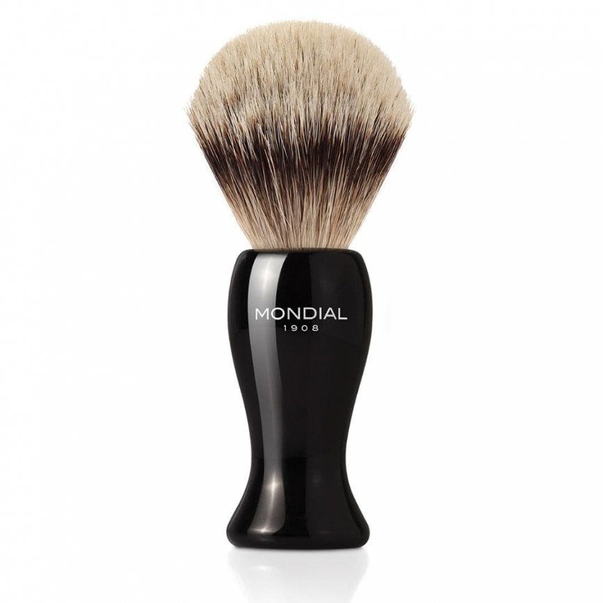 Помазок для бритья MONDIAL BOLTON, смола в черном цвете, натуральный ворс барсука SILVERTIP, размер узла L (22,5 мм) BOL-A-L
