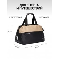 Дорожная сумка закрывается на двухстороннюю молнию, внутри большое отделение для вещей. Снаружи на передней стенке один карман на молнии. Оснащена двумя ручками, съемным регулируемым плечевым ремнем. Объем 38 л. Вес 0,5 кг.