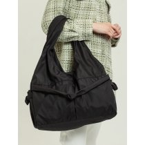 Объемная мягкая сумка с двойными ручками. Одно большое отделение на молнии, внутри дополнительный кармашек на молнии на задней стенке. Снаружи у ручек расположены кармашки на молнии (всего 4). Еще 2 кармашка на магнитных застежках находятся по бокам сумки. Высота мягких ручек - 30 см, Сумка украшена с трех сторон ремешками с декоративными узлами.